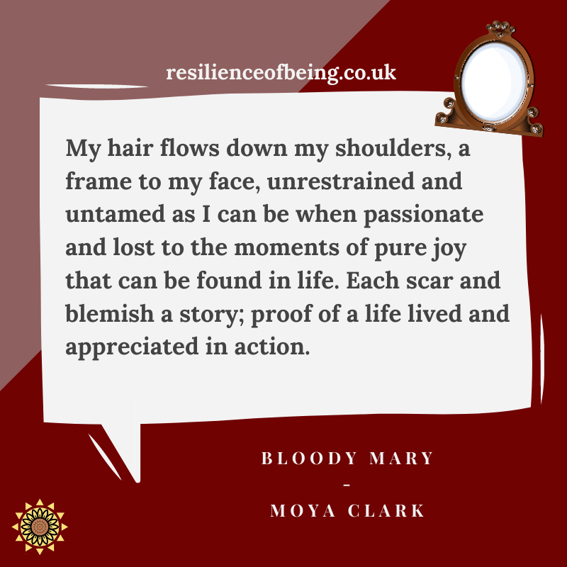 In the countdown to the release of The Resilience of Being, I am letting a few more snippets wriggle their way out of the book . With three days to go, I am sharing an unmissable story from Moya Clark using the tale of Bloody Mary to capture her experience…